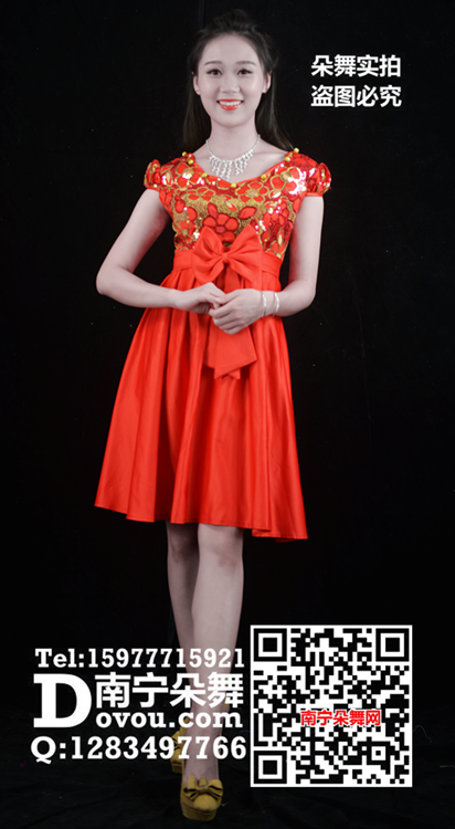 简单描述: 大红短袖小礼服