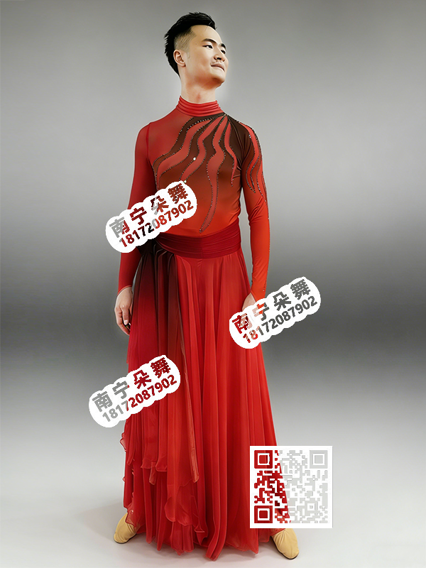 简单描述: 大红渐变黑现代舞大摆裙裤女装