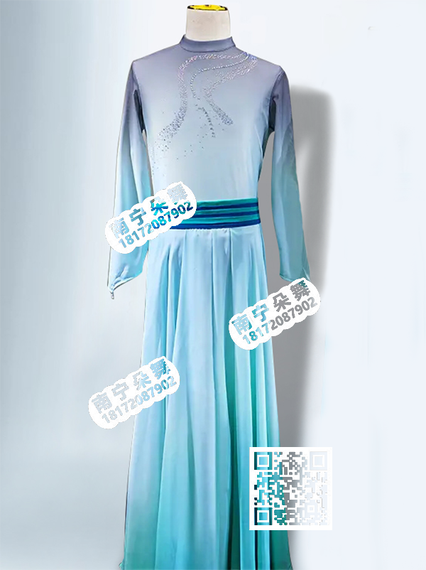 简单描述: 青灰渐变束腰飘逸大摆裙男当代