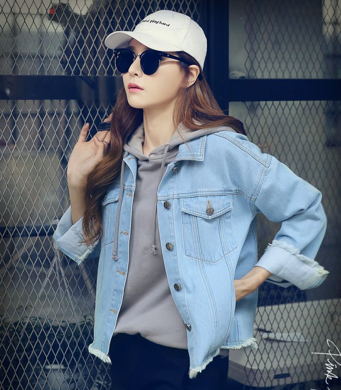 2017新款春宽松毛边长袖牛仔短外套MM6646悜2017新款春宽松毛边长袖牛仔短外套MM6646悜